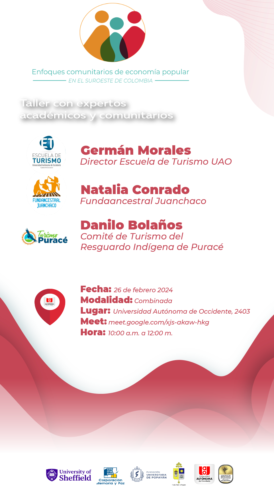 Este taller reunió a expertos académicos en gestión social del turismo para reflexionar sobre el papel del turismo como herramienta de desarrollo local sostenible, construcción de paz y fortalecimiento comunitario; resaltando su potencial para fortalecer el tejido social, generar ingresos dignos, promover la memoria colectiva y consolidar procesos de reconciliación en territorios afectados por el conflicto.